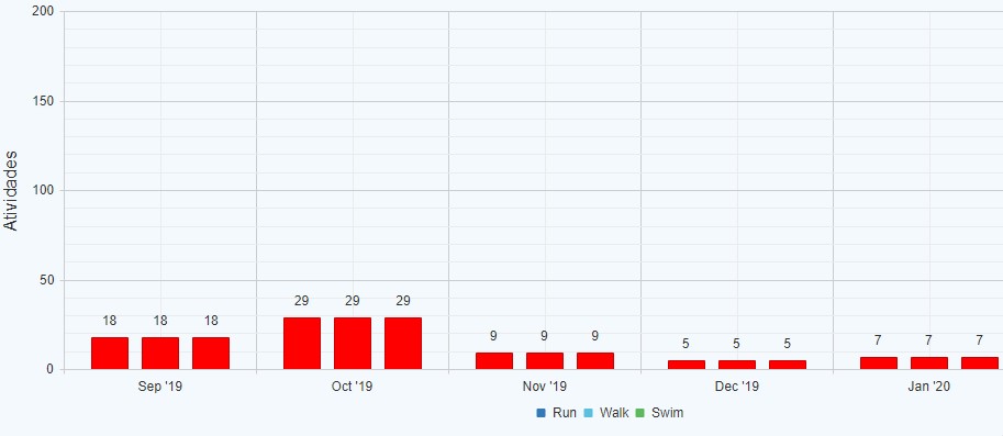 protected DataTable GetData(){ DataTable dt = new DataTable(); dt.Columns.Add("ID", typeof(int)); dt.Columns.Add("CategoryName", typeof(string)); dt.Columns.Add("TotalActivities", typeof(int)); dt.Columns.Add("CategoryColor", typeof(string)); dt.Columns.Add("Date", typeof(DateTime)); dt.Rows.Add(1, "Run", 0,"#ff0000", new DateTime(2019, 09, 1)); dt.Rows.Add(2, "Walk", 18, "#00ff00", new DateTime(2019, 09, 1)); dt.Rows.Add(3, "Swim", 0, "#0000ff", new DateTime(2019, 09, 1)); dt.Rows.Add(4, "Run", 1, "#ff0000", new DateTime(2019, 10, 1)); dt.Rows.Add(5, "Walk", 29, "#00ff00", new DateTime(2019, 10, 1)); dt.Rows.Add(6, "Swim", 0, "#0000ff", new DateTime(2019, 10, 1)); dt.Rows.Add(7, "Run", 0, "#ff0000", new DateTime(2019, 11, 1)); dt.Rows.Add(8, "Walk", 9, "#00ff00", new DateTime(2019, 11, 1)); dt.Rows.Add(9, "Swim", 0, "#0000ff", new DateTime(2019, 11, 1)); dt.Rows.Add(10, "Run", 0, "#ff0000", new DateTime(2019, 12, 1)); dt.Rows.Add(11, "Walk", 5, "#00ff00", new DateTime(2019, 12, 1)); dt.Rows.Add(12, "Swim", 0, "#0000ff", new DateTime(2019, 12, 1)); dt.Rows.Add(13, "Run", 0, "#ff0000", new DateTime(2020, 01, 1)); dt.Rows.Add(14, "Walk", 7, "#00ff00", new DateTime(2020, 01, 1)); dt.Rows.Add(15, "Swim", 1, "#0000ff", new DateTime(2020, 01, 1)); dt.Rows.Add(16, "Run", 0, "#ff0000", new DateTime(2020, 02, 1)); dt.Rows.Add(17, "Walk", 11, "#00ff00", new DateTime(2020, 02, 1)); dt.Rows.Add(18, "Swim", 3, "#0000ff", new DateTime(2020, 02, 1)); return dt;}