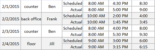 Attached is picture showing what is my requirement (for example: Scheduled time and Actual time in a row of a single column). How to achieve edit/ delete?