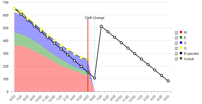 <p> var eff = [];<br> var x = document.getElementById("CheckM");<br> $("#ChartFullDay-@unique").kendoChart({</p><p> dataSource: {<br> data: eff,<br> transport: {<br> read: {<br> url: "@Url.Action("ChartData", new { id = "SkillFullDay" })",<br> dataType: "json"<br> }<br> },<br> schema: {<br> model: {<br> fields: {<br> Label: { type: "string" },<br> AllValue: { type: "number" },<br> MValue: { type: "number" },<br> SValue: { type: "number" },<br> EValue: { type: "number" },<br> OValue: { type: "number" },<br> Efficiency: { type: "number"}<br> }<br> }<br> },</p><p> },<br> series: [{<br> field: "MValue",<br> name: "M",<br> color: "red"<br> }, {<br> field: "EValue",<br> name: "E",<br> color: "green"<br> }, {<br> field: "SValue",<br> name: "S",<br> color: "blue"<br> }, {<br> field: "OValue",<br> name: "O",<br> color: "yellow"<br> }, {<br> type: "line",<br> stack: false,<br> name: "Expected",<br> data: eff,<br> field: "EffValue",<br> color: "black"<br> }, {<br> type: "line", <br> stack: false,<br> field: "AllValue",<br> name: "Actual",<br> color: function () { return winningDayColor; }<br> }],</p>Goals