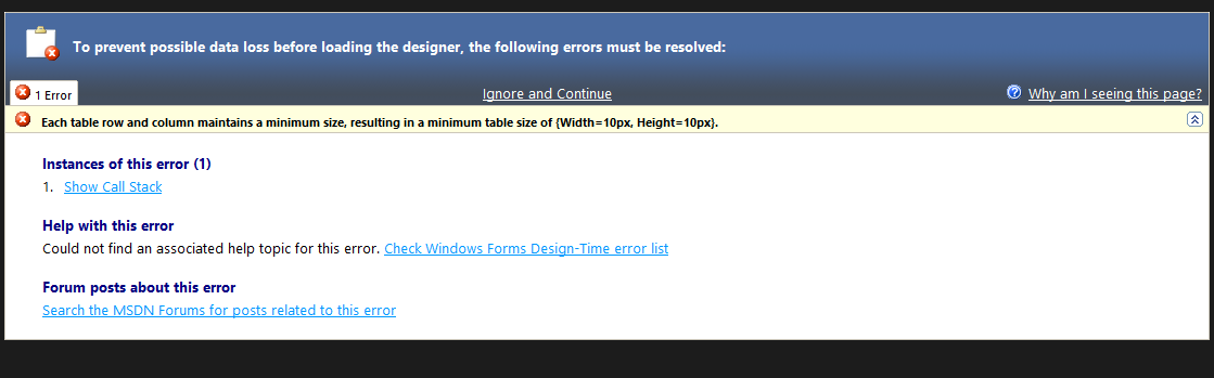 An error has occurred while processing Table 'table2':