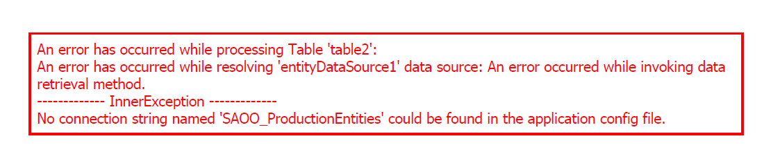 An error has occurred while resolving 'entityDataSource1' data source: An error occurred while invoking data