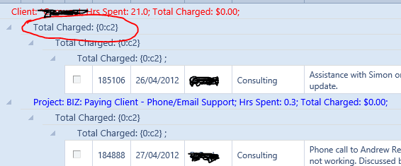 <GroupByExpressions> <telerik:GridGroupByExpression> <SelectFields> <telerik:GridGroupByField HeaderValueSeparator=": " FieldAlias="Client" FieldName="ClientName" /> <telerik:GridGroupByField HeaderValueSeparator=": " HeaderText="Hrs Spent" FieldAlias="HrsSpent" FieldName="TimeSpent" FormatString="{0:N1}" Aggregate="Sum" /> <telerik:GridGroupByField HeaderValueSeparator=": " HeaderText="Total Charged" FieldAlias="TotalCharged" FieldName="WorksheetAmount" FormatString="{0:c2}" Aggregate="Sum" /> <telerik:GridGroupByField HeaderValueSeparator=" " HeaderText=" " FieldAlias="ClientID" FieldName="ClientID" FormatString=" " /> </SelectFields> <GroupByFields> <telerik:GridGroupByField FieldName="ClientName" SortOrder="Ascending" /> </GroupByFields> </telerik:GridGroupByExpression> <telerik:GridGroupByExpression> <SelectFields> <telerik:GridGroupByField HeaderValueSeparator=": " FieldAlias="Project" FieldName="ProjectTitle" /> <telerik:GridGroupByField HeaderValueSeparator=": " HeaderText="Hrs Spent" FieldAlias="HrsSpent" FieldName="TimeSpent" FormatString="{0:N1}" Aggregate="Sum" /> <telerik:GridGroupByField HeaderValueSeparator=": " HeaderText="Total Charged" FieldAlias="TotalCharged" FieldName="WorksheetAmount" FormatString="{0:c2}" Aggregate="Sum" /> <telerik:GridGroupByField HeaderValueSeparator=" " HeaderText=" " FieldAlias="ProjectID" FieldName="ProjectID" FormatString=" " /> </SelectFields> <GroupByFields> <telerik:GridGroupByField FieldName="ProjectTitle" SortOrder="Ascending" /> </GroupByFields> </telerik:GridGroupByExpression> <telerik:GridGroupByExpression> <SelectFields> <telerik:GridGroupByField HeaderValueSeparator=": " FieldAlias="Office" FieldName="OfficeName" /> <telerik:GridGroupByField HeaderValueSeparator=": " HeaderText="Hrs Spent" FieldAlias="HrsSpent" FieldName="TimeSpent" FormatString="{0:N1}" Aggregate="Sum" /> <telerik:GridGroupByField HeaderValueSeparator=": " HeaderText="Total Charged" FieldAlias="TotalCharged" FieldName="WorksheetAmount" FormatString="{0:c2}" Aggregate="Sum" /> <telerik:GridGroupByField HeaderValueSeparator=" " HeaderText=" " FieldAlias="OfficeID" FieldName="OfficeID" FormatString=" " /> </SelectFields> <GroupByFields> <telerik:GridGroupByField FieldName="OfficeName" SortOrder="Ascending" /> </GroupByFields> </telerik:GridGroupByExpression> <telerik:GridGroupByExpression> <SelectFields> <telerik:GridGroupByField HeaderValueSeparator=": " FieldAlias="Job" FieldName="JobTitle" /> <telerik:GridGroupByField HeaderValueSeparator=": " HeaderText="Hrs Spent" FieldAlias="HrsSpent" FieldName="TimeSpent" FormatString="{0:N1}" Aggregate="Sum" /> <telerik:GridGroupByField HeaderValueSeparator=": " HeaderText="Total Charged" FieldAlias="TotalCharged" FieldName="WorksheetAmount" FormatString="{0:c2}" Aggregate="Sum" /> <telerik:GridGroupByField HeaderValueSeparator=" " HeaderText=" " FieldAlias="ProjectID" FieldName="ProjectID" FormatString=" " /> <telerik:GridGroupByField HeaderValueSeparator=" " HeaderText=" " FieldAlias="JobID" FieldName="JobID" FormatString=" " /> </SelectFields> <GroupByFields> <telerik:GridGroupByField FieldName="JobTitle" SortOrder="Ascending" /> </GroupByFields> </telerik:GridGroupByExpression> </GroupByExpressions>See screenshot of issue attached.