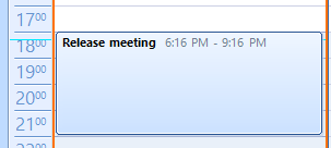 this.radScheduler1.Appointments.Add(new Appointment(DateTime.Now, DateTime.Now.AddHours(1), "Release meeting"));