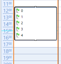 Another approach that I can suggest is to use a RadListViewElement to hold the icon/text items in the CreateChildElements method of the custom AppointmentElement class. By default, RadListView supports three ViewTypes – ListView, IconsView, and DetailsView. For your custom requirement and layout, it is appropriate to choose IconsView which will display the list items in icons. This approach is shown in the following code snippet and the result is demonstrated in the attached gif file: