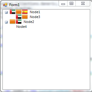 Imports System.Collections.GenericImports System.DrawingImports System.Windows.FormsImports Telerik.WinControls.UIPublic Class Form1 Private radTreeView1 As New RadTreeView() Private image1 As Image = My.Resources.Resource1.ar Private image2 As Image = My.Resources.Resource1.ca Private image3 As Image = My.Resources.Resource1.es_mx Private Sub Form1_Load(ByVal sender As System.Object, ByVal e As System.EventArgs) Handles MyBase.Load radTreeView1.Dock = DockStyle.Fill Dim node1 = New CustomTreeNode("Node1") Dim node2 = New CustomTreeNode("Node2") Dim node3 = New CustomTreeNode("Node3") node3.Images = New List(Of Image)() node3.Images.Add(image1) node3.Images.Add(image2) Dim node4 = New CustomTreeNode("Node4") node1.Images = New List(Of Image)() node1.Images.Add(image1) node1.Images.Add(image2) node1.Images.Add(image3) radTreeView1.Nodes.Add(node1) radTreeView1.Nodes.Add(node2) node2.Images = New List(Of Image)() node2.Images.Add(image2) node2.Images.Add(image1) node1.Nodes.Add(node3) node2.Nodes.Add(node4) Me.Controls.Add(radTreeView1) End SubEnd ClassPublic Class CustomTreeNode Inherits RadTreeNode Public Sub New() End Sub Public Sub New(ByVal name As String) MyBase.New(name) End Sub Private m_images As New List(Of Image)() Public Overrides Property Image() As System.Drawing.Image Get If Me.m_images.Count = 0 Then Return MyBase.Image End If Return Me.GetImageForList(Me.Images) End Get Set(ByVal value As System.Drawing.Image) MyBase.Image = value End Set End Property Public Property Images() As List(Of Image) Get Return Me.m_images End Get Set(ByVal value As List(Of Image)) Me.m_images = value End Set End Property Private Function GetImageForList(ByVal images As List(Of Image)) As Image If images.Count = 0 Then Return Nothing End If Dim bitmap = New Bitmap(20 * images.Count, 20) Dim g As Graphics = Graphics.FromImage(bitmap) Dim count = 0 For Each image As Image In images g.DrawImage(image, 20 * count, 0, 20, 20) count += 1 Next Return bitmap End FunctionEnd ClassHope this helps, if you have any other questions or comments, please let me know,