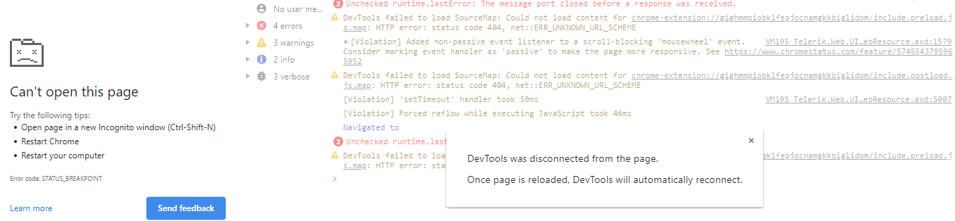 Currently we receive the screen attached when DevTools is opened on the Google Chrome.