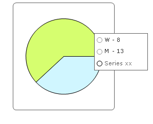 Dim chartSeries As ChartSeries Dim dataset As GeschlechterverhaeltnisDataTable = GetMyData() Me.pie_Chart.Chart.Series.RemoveSeries() Me.pie_Chart.PlotArea.XAxis.Appearance.TextAppearance.TextProperties.Font = New Font("Arial", 10) Me.pie_Chart.PlotArea.XAxis.Appearance.TextAppearance.TextProperties.Color = Color.Black Me.pie_Chart.PlotArea.XAxis.AutoScale = False Me.pie_Chart.Legend.TextBlock.Appearance.TextProperties.Color = Color.LightSkyBlue Me.pie_Chart.Legend.Appearance.Position.AlignedPosition = AlignedPositions.Right For i As Integer = 0 To dataset.Count - 1 chartSeries = New ChartSeries(dataset(i).Column1.ToString(), ChartSeriesType.Pie) chartSeries.AddItem(New ChartSeriesItem(dataset(i).count_result, dataset(i).count_result)) Me.pie_Chart.Series.Add(chartSeries) Next