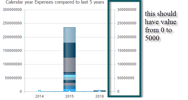 I'm having one chart with two type in it. one is stacked bar and other is Line Series. I want Stacked Bar chart should preferred left side Y axis value and Line series should preferred Right Side Y axis.