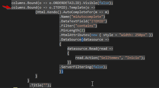 I have created an ASP.NET MVC c# project and I have added two grids using the hierarchy option. parent grid contains Orders Header records and child grid contains Orders details records, into grid child we need to use an telerik autocomplete mvc control here start the problem because is not working. The two grids has been created using Razor syntax into the view, and the idea is create a CRUD into Parent Grid and into Child Grid, I mean when you create a new header row (parent grid) you can add rows into child grid (master - detail behavior)