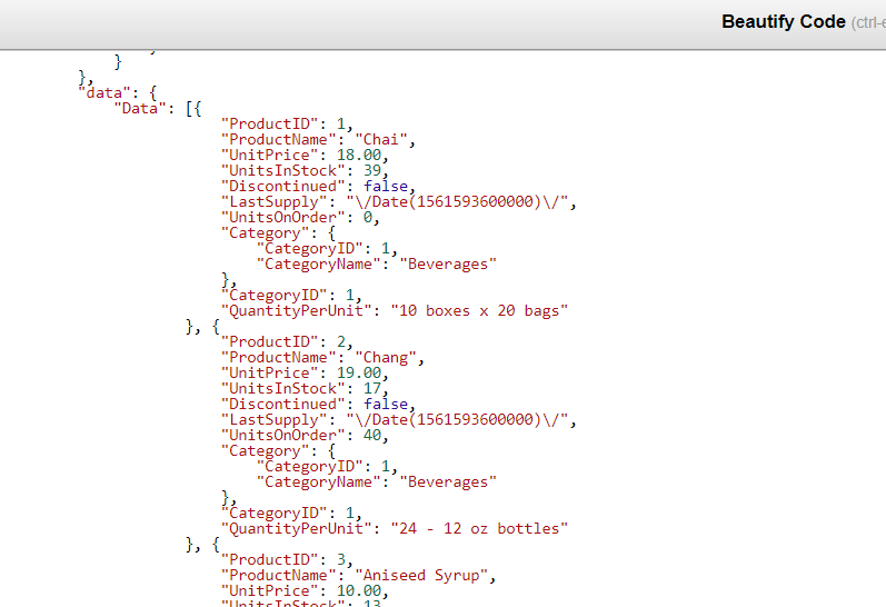 or if I check the response in Chrome - this is what I get: