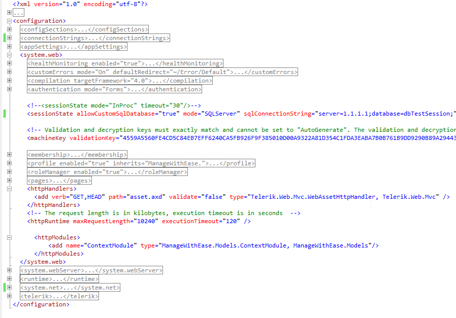correction i attached screenshots of my web.config file since it doesn't allow anything else...