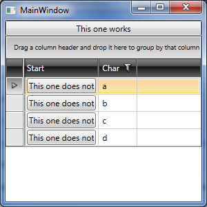 | <telerik:RadGridView Name="radGridView1" ItemsSource="abcd"> |