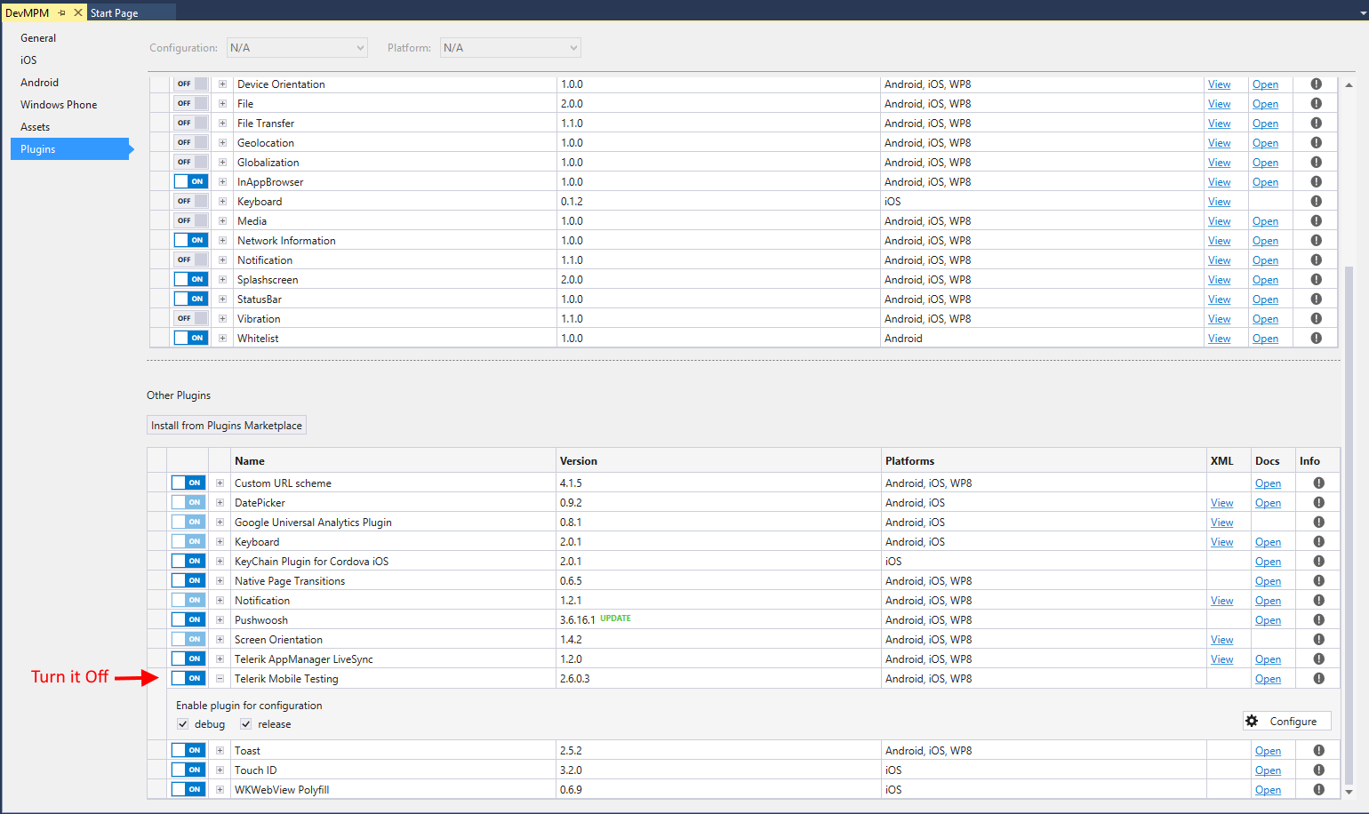 2. Build and deploy your AppBuilder app without using any Telerik Mobile Testing plugins. Then follow the Test Studio Mobile's Built-In configuration wizard to instrument the already deployed app by choosing it from the list of available apps on the device. The wizard will add the required Mobile Testing plugin for you, but it is important that the app doesn't contain any Mobile Testing plugins when the wizard is started.