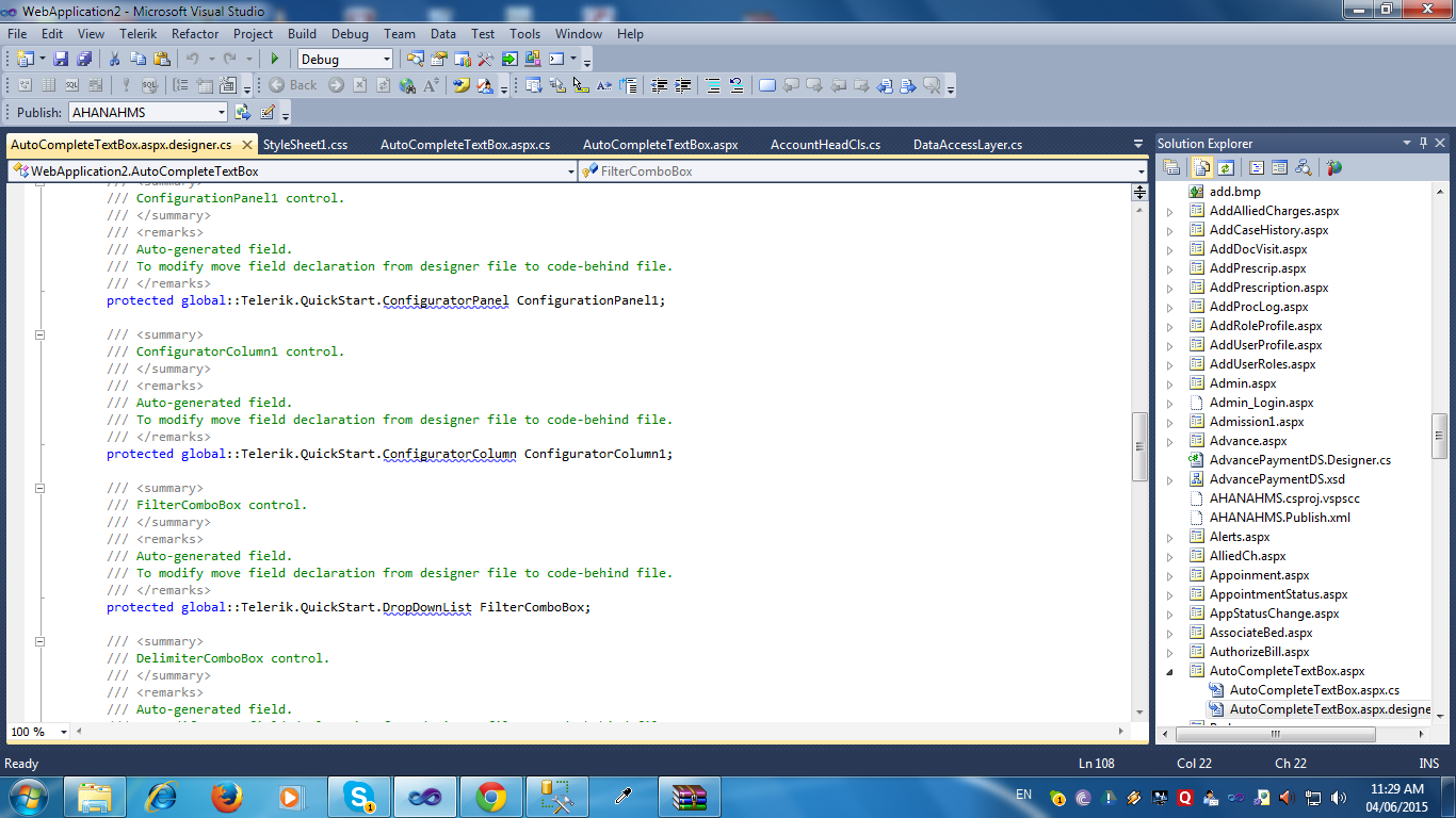 while using <telerik:RadAutoCompleteBox> i got error in designer page as Quickkstart reference was not fount and i downloaded Telerik Quick Start Dll file and added in the reference then i got another error following below