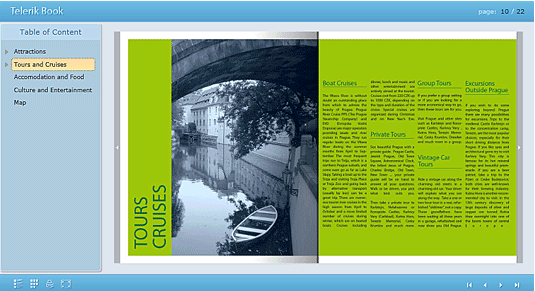 <telerik:RadTreeView Margin="25,45,25,0" x:Name="RadTreeView1"> <telerik:RadTreeViewItem Tag="4" Header="UI Components" IsExpanded="True"> <telerik:RadTreeViewItem Cursor="Hand" DefaultImageSrc="../Images/Book/Icons/aspnet.png" Header="ASP.NET Ajax" /> <telerik:RadTreeViewItem Cursor="Hand" DefaultImageSrc="../Images/Book/Icons/Sl.png" Header="Silverlight" /> <telerik:RadTreeViewItem Cursor="Hand" DefaultImageSrc="../Images/Book/Icons/mvc.png" Header="ASP.NET MVC" /> <telerik:RadTreeViewItem Cursor="Hand" DefaultImageSrc="../Images/Book/Icons/winforms.png" Header="Winforms" /> <telerik:RadTreeViewItem Cursor="Hand" DefaultImageSrc="../Images/Book/Icons/wpf.png" Header="WPF" /> </telerik:RadTreeViewItem> <telerik:RadTreeViewItem Header="Data" Tag="6" IsExpanded="True"> <telerik:RadTreeViewItem Cursor="Hand" void RadTreeViewItem_MouseLeftButtonDown(object sender, System.Windows.Input.MouseButtonEventArgs e) { if (this.foldActivated) { return; } RadTreeViewItem item = (e.OriginalSource as FrameworkElement).ParentOfType<RadTreeViewItem>(); if (item == null) return; object tag = (item.Parent as FrameworkElement).Tag; if (tag == null) return; int pageIndex = Int16.Parse(tag.ToString()); if (pageIndex > 0) { RadBook1.RightPageIndex = pageIndex; } }Greetings,