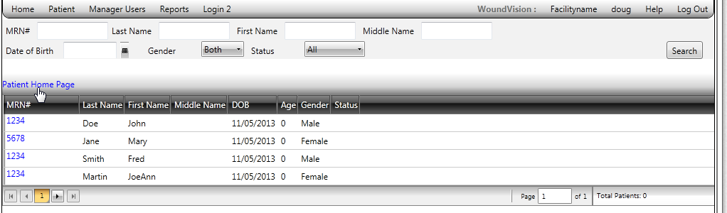 <telerik:RadGridView x:Name="RgvPatients" HorizontalAlignment="Stretch" VerticalAlignment="Top" HorizontalContentAlignment="Center" AutoGenerateColumns="False" IsReadOnly="True" SelectionMode="Single" SelectionUnit="Cell" ShowGroupPanel="False" EnableRowVirtualization="False" RowIndicatorVisibility="Collapsed" IsFilteringAllowed="False" ItemsSource="{Binding Patients}" GridLinesVisibility="Horizontal" > <telerik:RadGridView.Columns> <telerik:GridViewColumn Header="MRN#" IsSortable="True"> <telerik:GridViewColumn.CellTemplate> <DataTemplate> <Grid> <Grid.ColumnDefinitions> <ColumnDefinition Width="Auto"/> <ColumnDefinition Width="*"/> </Grid.ColumnDefinitions> <Button Style="{StaticResource ButtonTransparentBlackText}" VerticalAlignment="Center" Height="25" Width="100" Command="{Binding Path=SelectPatientCommand}" Content="{Binding mrn}"> </Button> </Grid> </DataTemplate> </telerik:GridViewColumn.CellTemplate> </telerik:GridViewColumn> <telerik:GridViewDataColumn Header="Last Name" DataMemberBinding="{Binding last_name}" IsReadOnly="True" TextAlignment="Left" /> <telerik:GridViewDataColumn Header="First Name" DataMemberBinding="{Binding first_name}" IsReadOnly="True" TextAlignment="Left" /> <telerik:GridViewDataColumn Header="Middle Name" DataMemberBinding="{Binding middle_name}" IsReadOnly="True" TextAlignment="Left" /> <telerik:GridViewDataColumn Header="DOB" DataMemberBinding="{Binding dob, StringFormat='{}{0:MM/dd/yyyy}'}" IsReadOnly="True" TextAlignment="Left" /> <telerik:GridViewDataColumn Header="Age" DataMemberBinding="{Binding dob, Converter={StaticResource AgeConverter}}" IsReadOnly="True" TextAlignment="Left" /> <telerik:GridViewDataColumn Header="Gender" DataMemberBinding="{Binding Gender}" IsReadOnly="True" TextAlignment="Left" /> <telerik:GridViewDataColumn Header="Status" DataMemberBinding="{Binding adt_type}" IsReadOnly="True" TextAlignment="Left" /> </telerik:RadGridView.Columns></telerik:RadGridView><DockPanel> <telerik:RadDataPager x:Name="RdpPatients" DockPanel.Dock="Left" Width="830" NumericButtonCount="5" Height="28" DisplayMode="All" PageIndex="{Binding Path=PageData.PageIndex, Mode=TwoWay}" PageSize="20" ItemCount="{Binding Path=PageData.TotalRecords}" > <i:Interaction.Triggers> <i:EventTrigger EventName="PageIndexChanged"> <i:InvokeCommandAction Command="{Binding RdpPatients_PageIndexChangedCommand}" /> </i:EventTrigger> </i:Interaction.Triggers> </telerik:RadDataPager></DockPanel>Thanks ~Doug