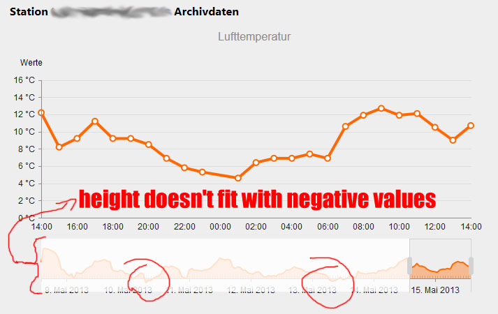 I'm using he StockChart for displaying a line chart on top of the navigator. It generally works well, but when there are negative values within my Json data, the navigator doesn't mask the unselected data correctly and it overlaps the labels below. What can I do about it? Please see the attached images for an example.