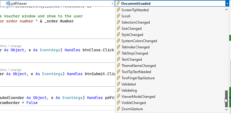 I didn't see a preloaded Event in the UI for ViewElementChanged, and I wasn't sure how to manually recreate the event. Your code was in C# but the convertor from C to VB didn't seem to work for me in the designer or in the form load event.