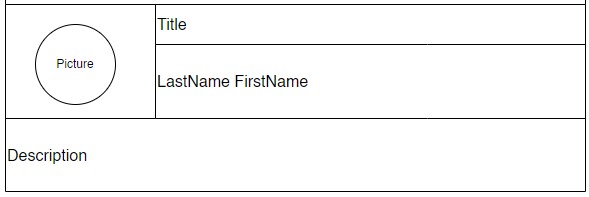 I also tried to make a table (structured as in attached picture) but I didn't succeed to create the table with a colored background or image background (on all the table) and with the profile picture which should be place in a circle shape, ahead the table background.