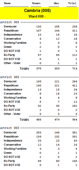 We are converting our Legacy system to .Net using Telerik Reports and the Crosstab control. Below, is a screen shot of an example from the Legacy system. This is a cross tab report, based on Town/Ward/District and Party Affiliation, counting on Gender. Formatting is key for our customers. Any help would be greatly appreciated.