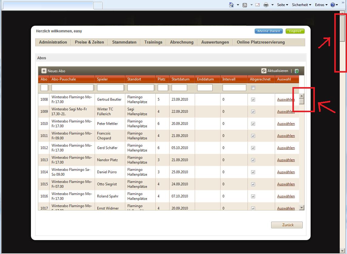 Now I just noticed that in addition to the grid scrollbar there's a vertical scrollbar in the browser as well. I don't need that scrollbar because when I scroll down I just get a blank (in my case: black) page.