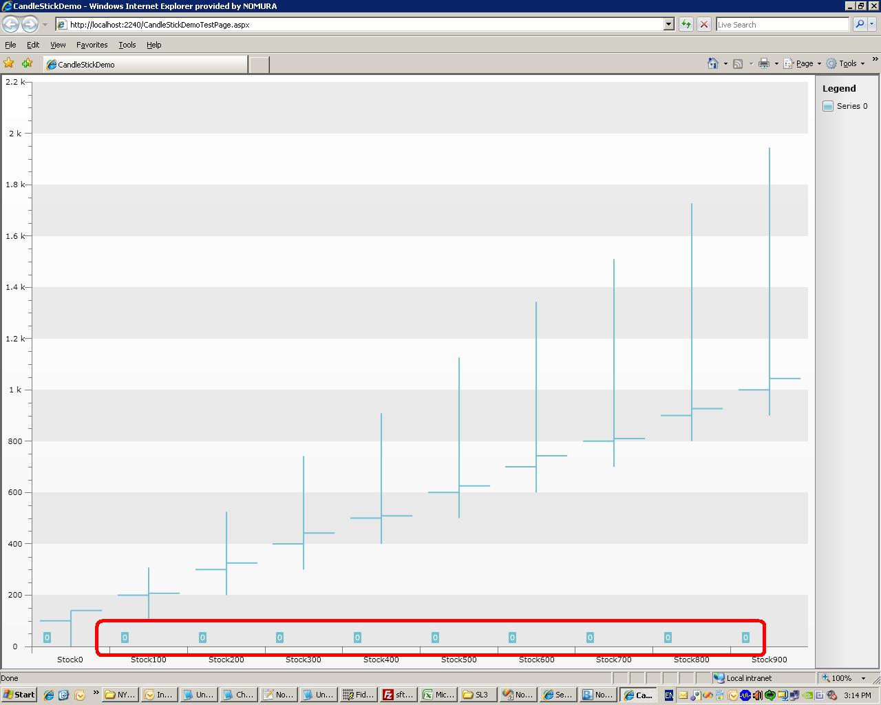 so that to see the Item Label, but stick chart is showing 0 as highlighted in the screenshot. Is there way to see open,Close,Low.high value of the stick as a item label?