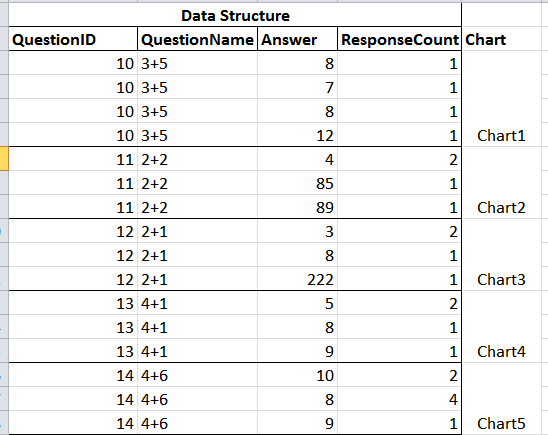 Data Structure: QuestionID, QuestionName, Answer, ResponseCount