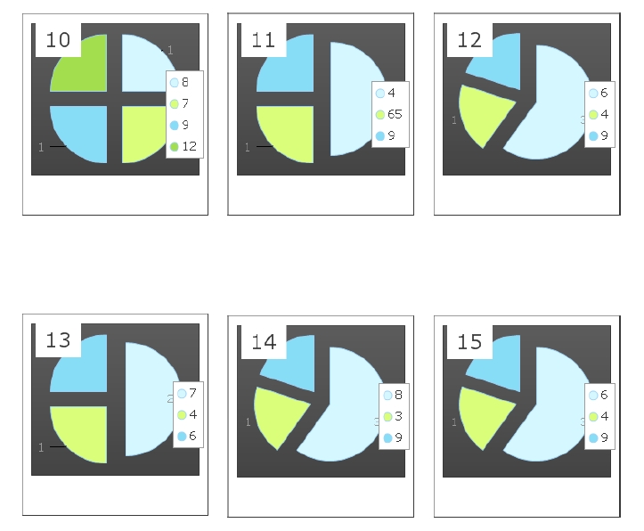 6 Pie charts per page (3 pie charts per line horizontally)