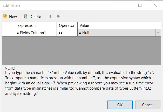 This way, the rows where that field is Null will be filtered out, and in the case of the units with a single row with null data, after it is filtered, there will be 0 rows of data for that table and the "No Data Message" functionality should get triggered.