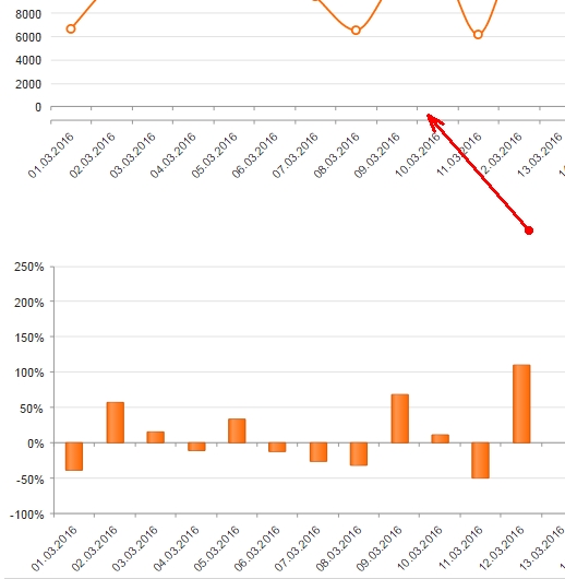 Есть график, в который отправляются даты и различные значения, значения могут быть как отрицательные так и положительные.