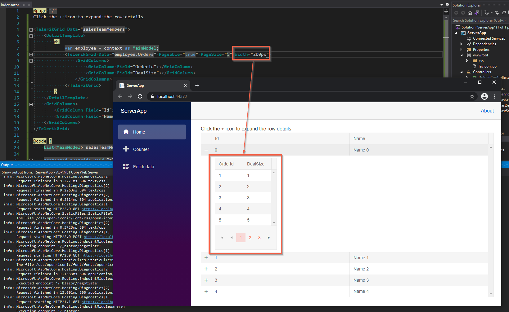 If we use this as our example: https://docs.telerik.com/blazor-ui/components/grid/hierarchy