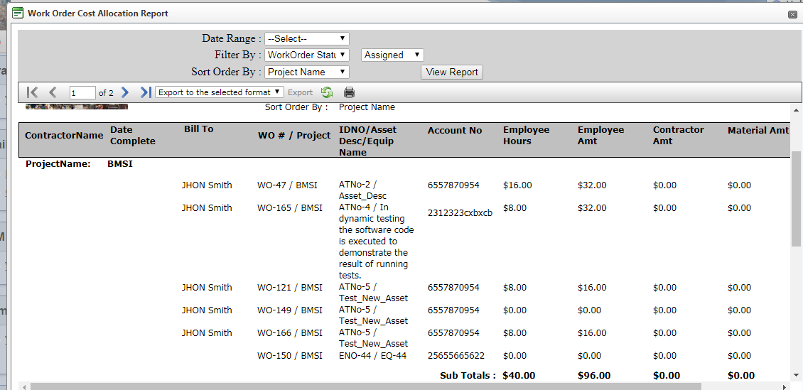 Data:- Name, Amount