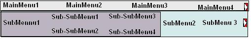 i can achive 60% of the structure using RadMenu. But you can see in the image that SubMenu1 have also Sub Sub Menus. But that need not display below or top of the same level. I need to move the Sub Menu2 and Sub Menu 3 to the right and the SubSub Menus are displayed just right side of the parent like nested.Any method to achieve this?