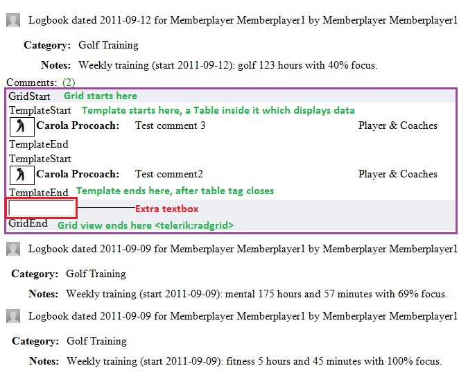 <telerik:RadGrid ID="radComments" AllowPaging="True" runat="server" PageSize="15" Skin="" GridLines="None" BorderStyle="None" BorderColor="Transparent" ShowHeader="false" OnItemCommand="radComments_ItemCommand" OnItemDataBound="radComments_ItemDataBound" OnItemCreated="radComments_ItemCreated" Width="100%" EnableTheming="false" Style="padding-left: 16px;" OnPageIndexChanged="radComments_PageIndexChanged"> <PagerStyle Mode="NumericPages" /> <ExportSettings ExportOnlyData="true"> </ExportSettings><MasterTableView TableLayout="Fixed" Width="100%" Height="100%" BorderStyle="None" DataKeyNames="BookID,commentid,CommentAttachment,userid,Commenttype"> <ItemTemplate><table width="100%" border="0" cellspacing="1" cellpadding="1"><tr><td valign="top" align="left" style="text-align: center; width: 5%; border: 1px;border-style: solid; padding-bottom: 5px;" class="box-border"> <asp:Image ImageAlign="AbsMiddle" ID="imgWriterImage" runat="server" /></td><td width="20%" align="left"><strong><%# Eval("UserName") + ":" %></strong></td><td class="altbg" width="45%" align="left"><%# Eval("Commenttext") %></td><td width="20%" align="left"><asp:Label ID="lblType" runat="server" Text='<%# Eval("Commenttype") %>'></asp:Label></td><td id="tdEditDelete" runat="server" align="center" width="20%"><asp:HiddenField ID="hdnCommentID" runat="server" Value='<%# Eval("commentid") %>' /><asp:HiddenField ID="hdnBookID" runat="server" Value='<%# Eval("bookid") %>' /><asp:ImageButton ID="btnImgEdit" runat="server" ImageUrl="~/Forum/ForumImages2/edit.gif" OnClientClick="Edit(this);return false;" ToolTip="Edit" /><asp:ImageButton ID="btnImgDelete" runat="server" ImageUrl="~/Forum/ForumImages2/delete.gif"class="DelComment" ToolTip="Delete" /></td></tr></table></ItemTemplate></MasterTableView></telerik:RadGrid>Why I am getting extra inputbox in word after export?