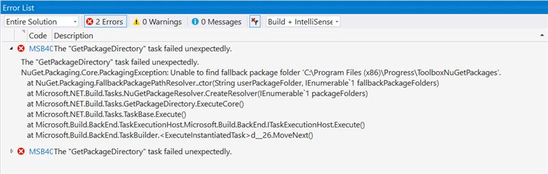 You should create the missing ToolboxNuGetPackages folder in the installation folder of the controls, usually at C:\Program Files (x86)\Progress\ToolboxNuGetPackages.