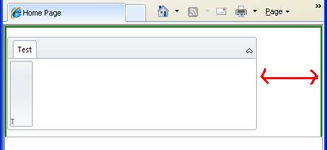 <telerik:RadDockLayout ID="RadDockLayout1" runat="server"> <telerik:RadSplitter ID="RadSplitter1" runat="server" Orientation="Vertical" LiveResize="true" PanesBorderSize="0" Width="100%" Height="100%" VisibleDuringInit="false" > <telerik:RadPane ID="RadPane1" runat="server" Width="100%" Height="100%" Scrolling="None"> <telerik:RadSplitter ID="RadSplitter2" runat="server" Orientation="Horizontal" PanesBorderSize="0" Width="100%" VisibleDuringInit="false" ResizeWithParentPane="true" > <telerik:RadPane ID="RadPane2" runat="server" Width="100%" Height="156px" Scrolling="None"> <table cellpadding="0" cellspacing="0" style="width: 100%; height: 100%;"> <tr> <td style="width: 100%; height: 100%; border: 2px solid green;"> <telerik:RadRibbonBar ID="RadRibbonBar1" runat="server" Width="100%" EnableMinimizing="true"> <Tabs> <telerik:RibbonBarTab ID="RibbonBarTab1" Text="Test"> <telerik:RibbonBarGroup ID="RibbonBarGroup1" runat="server" Text="Test" > <Items> <telerik:RibbonBarTemplateItem ID="RibbonBarTemplateItem1" runat="server" Size="Medium"> </telerik:RibbonBarTemplateItem> </Items> </telerik:RibbonBarGroup> </telerik:RibbonBarTab> </Tabs> </telerik:RadRibbonBar> </td> </tr> </table> </telerik:RadPane> <telerik:RadPane ID="RadPane3" runat="server" Width="100%" Scrolling="None"> </telerik:RadPane> </telerik:RadSplitter> </telerik:RadPane> </telerik:RadSplitter> </telerik:RadDockLayout>The 100% width for the RadRibbonBar is never reached. In our example above, a green border has been added on the 100% width <td> element containing the RadRibbonBar to show the error.