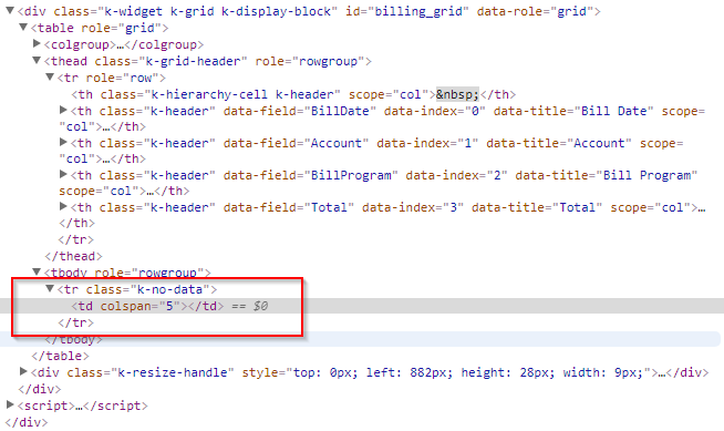 <tr class="k-no-data"> <td colspan="5"></td></tr>