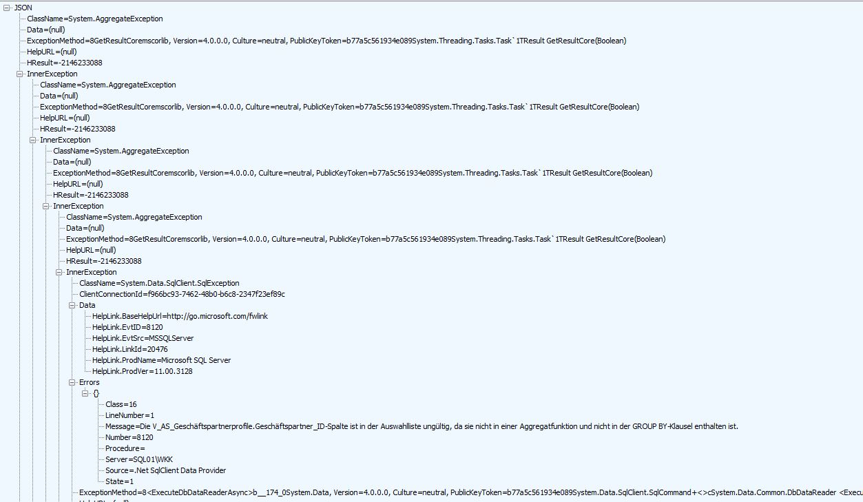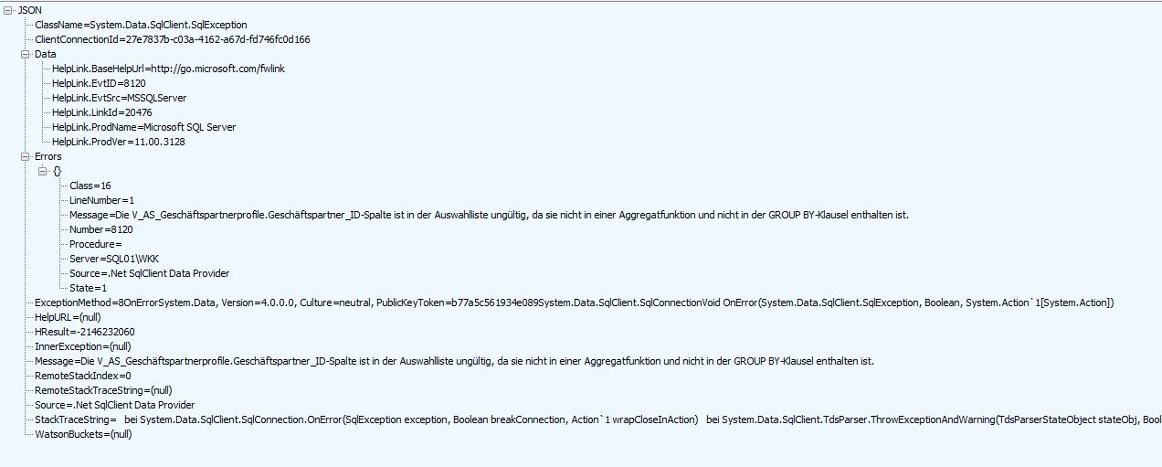 public IActionResult Read(bool execute, string queryJson, string optionsJson, [DataSourceRequest] DataSourceRequest request) { try { var query = eqService.GetQueryByJsonDict(queryJson.ToJsonDict()); var sql = eqService.BuildQuery(query, optionsJson.ToJsonDict()); if (execute) { SqlConnection c = new SqlConnection(this.cache.Get("ExecuteConnectString").ToString()); result = c.Query<dynamic>(sql, commandType: System.Data.CommandType.Text); return Json(result.ToDataSourceResult(request)); } catch (Exception ex) { return Json(ex); } }