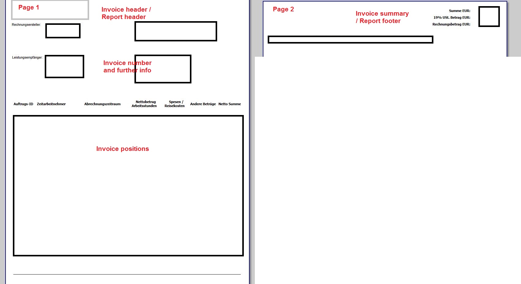 But in print preview mode the page breaking differs from the layout. If invoice positions fit to one page and the summary in printed on second page the group header isn't printed anymore on second page (even with option "PrintOnEveryPage").