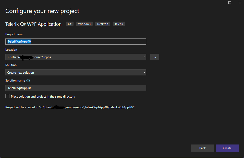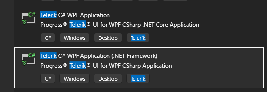 In this case, you will go through the Visual Studio project creation dialog where no .NET version selection is available. And on the next step you should see the Telerik dialog where you can select the .NET version.