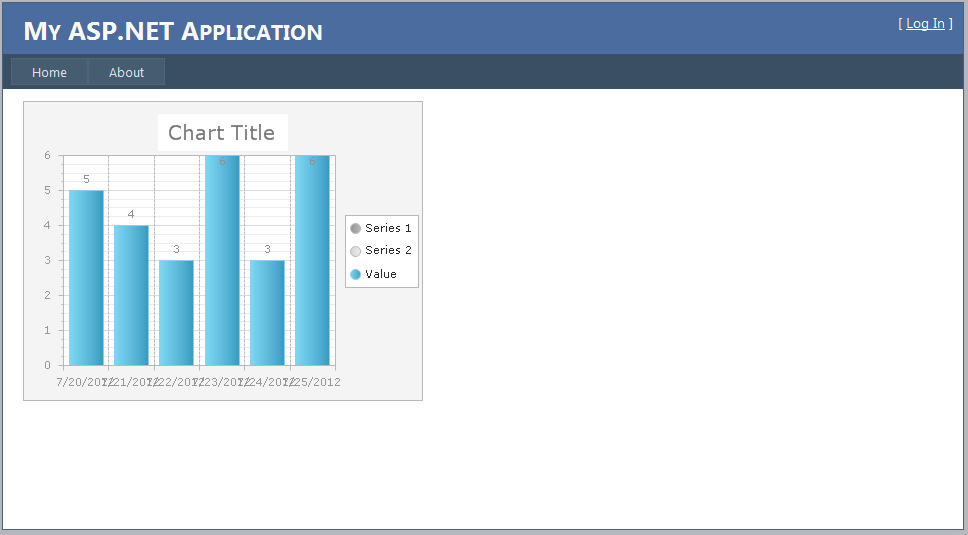 <%@ Page Language="C#" AutoEventWireup="true" MasterPageFile="~/masterpages/ControlHolder.master" CodeBehind="test2.aspx.cs" Inherits="TestLme2" %> <%@ MasterType virtualpath="~/masterpages/ControlHolder.Master" %> <%@ Register TagPrefix="telerik" Namespace="Telerik.Web.UI" Assembly="Telerik.Web.UI" %> <%@ Register assembly="Telerik.Web.UI" namespace="Telerik.Charting" tagprefix="telerik" %> <asp:Content ID="ContentMain" ContentPlaceHolderID="cntControl" Runat="Server"> <telerik:RadChart ID="radChart1" runat="server" Width="700px" AutoLayout="True" Skin="Default2006"> <Series> <telerik:ChartSeries Name="Series 1"> <Appearance> <FillStyle MainColor="150, 150, 150" SecondColor="194, 194, 194"> </FillStyle> <Border Color="Silver" /> </Appearance> </telerik:ChartSeries> <telerik:ChartSeries Name="Series 2"> <Appearance> <FillStyle MainColor="215, 215, 214" SecondColor="241, 241, 241"> </FillStyle> <Border Color="Silver" /> </Appearance> </telerik:ChartSeries> </Series> <PlotArea> <XAxis> <Appearance Color="Silver" MajorTick-Color="Silver"> <MajorGridLines Color="Silver" /> </Appearance> </XAxis> <YAxis> <Appearance Color="Silver" MajorTick-Color="Silver" MinorTick-Color="Silver"> <MajorGridLines Color="Silver" /> <MinorGridLines Color="224, 224, 224" /> </Appearance> </YAxis> <Appearance Dimensions-Margins="18%, 22%, 12%, 10%"> <FillStyle MainColor="White" SecondColor="White" FillType="Solid"> </FillStyle> <Border Color="Silver" /> </Appearance> </PlotArea> <Appearance> <FillStyle MainColor="WhiteSmoke"> </FillStyle> <Border Color="Silver" /> </Appearance> <ChartTitle> <Appearance Position-AlignedPosition="Top"> </Appearance> <TextBlock> <Appearance TextProperties-Color="Gray"> </Appearance> </TextBlock> </ChartTitle> <Legend> <Appearance Dimensions-Margins="18%, 1%, 1px, 1px"> <Border Color="Silver" /> </Appearance> </Legend> </telerik:RadChart> <br /> <br /> </asp:Content>and the aspx.cs page: