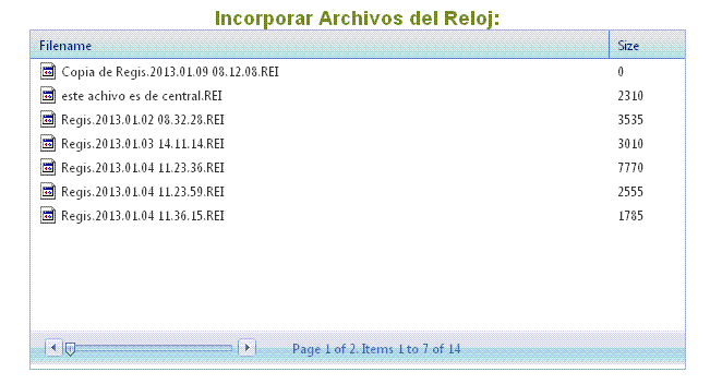<telerik:RadAjaxPanel ID="RadAjaxPanel1" runat="server" LoadingPanelID="progress"> <telerik:RadFormDecorator ID="FormDecorator1" runat="server" Skin="Office2007" /> <asp:Label runat="server" Font-Size="Large" ID="lblEncabezado" CssClass="label" Text="Incorporar Archivos del Reloj:" /> <telerik:RadFileExplorer ID="FileExplorer1" runat="server" DisplayUpFolderItem="false" AllowPaging="true" EnableOpenFile="true" PageSize="7" EnableAsyncUpload="false" EnableCopy="false" EnableCreateNewFolder="false" Height="310px" OnClientFileOpen="OnClientFileOpen" OnClientMove="OnClientMove" Skin="Office2007" VisibleControls="Grid" Width="600px"> <Configuration SearchPatterns="*.REI" /> </telerik:RadFileExplorer> <br />and here is mi code.