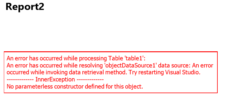 In general, the purpose of the ObjectDataSource component is to provide data to the report in a declarative manner. The ObjectDataSource.DataSource should be the assembly qualified name or Type of the data access layer (class), where the reporting engine will use System.Reflection to create the instance of the class (by using its default constructor) and to execute its method specified by the ObjectDataSource.DataMember.