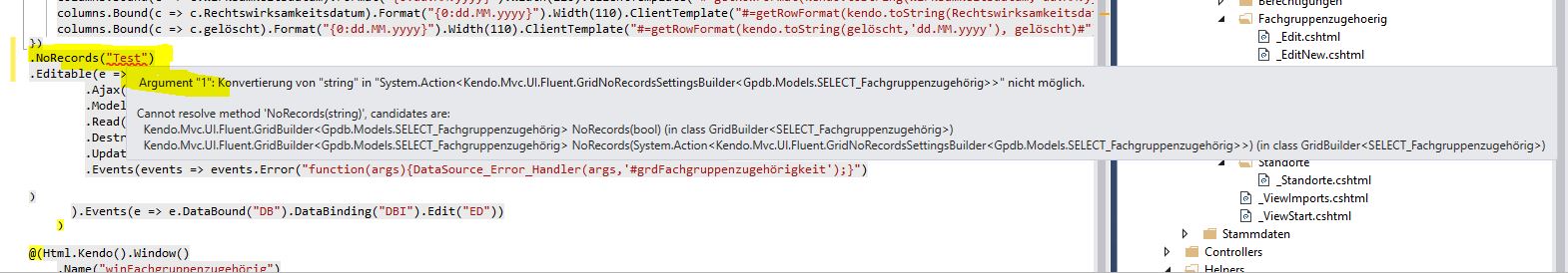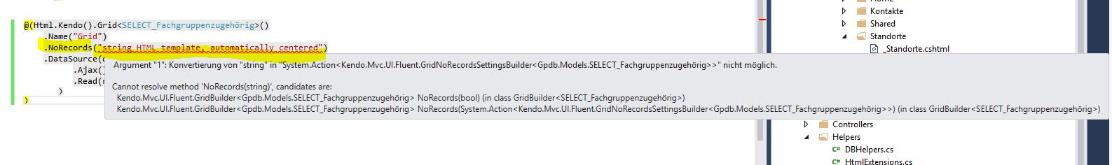 there is written that I can use .NoRecords("Mystring") but this is not allowed (see Pictures)