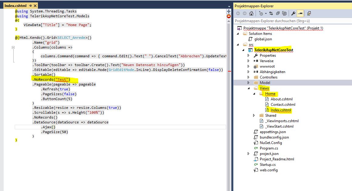 The Kendo UI Grid for ASP.NET Core NoRecords is configurable in two ways: