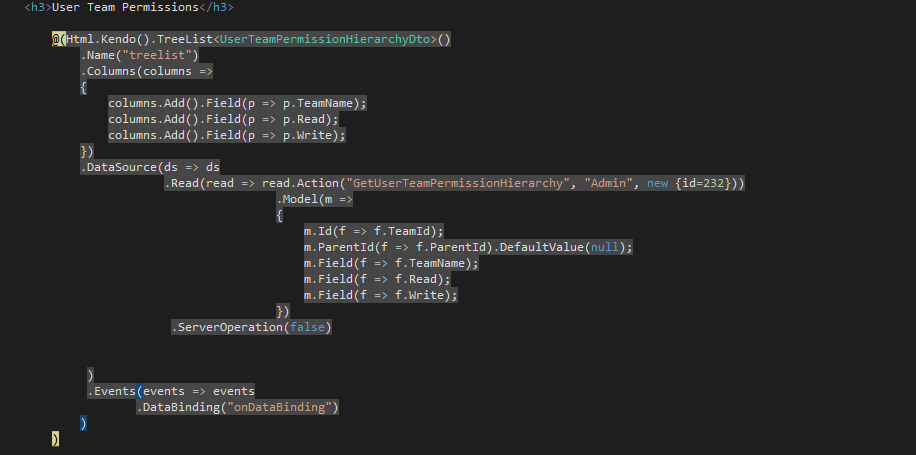 @(Html.Kendo().TreeList<EmployeeDirectoryModel>()