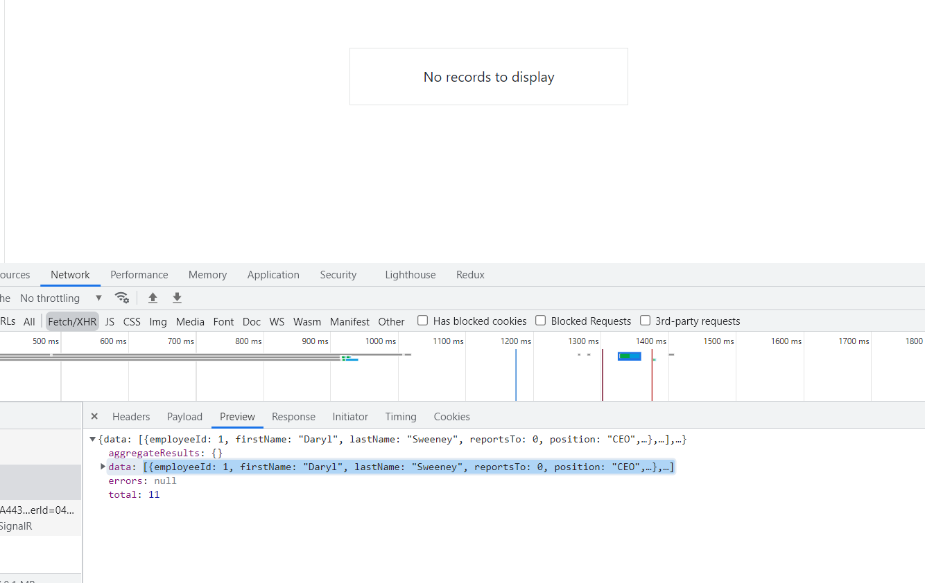 I'm using Html.Kendo().TreeList, check tab Network on chrome I saw call API 200 and return data, but list alert no records to display