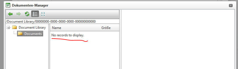 2. Click on hyperlink manager and then click on button next to URL click on documents. If there is no content in the folder it shows ""No Records to Display" in all languages.