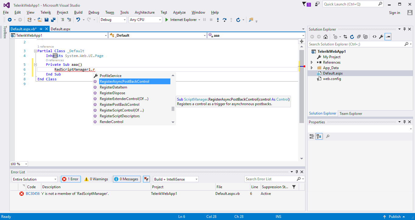 Created a new base Telerik project, which contained markup for RadScriptManager.