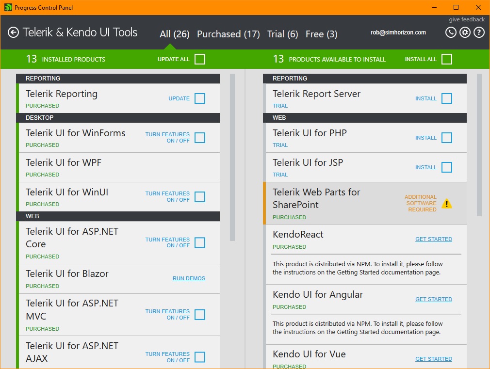When I bring up the Control Panel there is no "TURN FEATURES On/Off" check box for UI for WPF? There is no Telerik for WPF New Project template either? I see the standard MS WPF templates, but not Telerik?